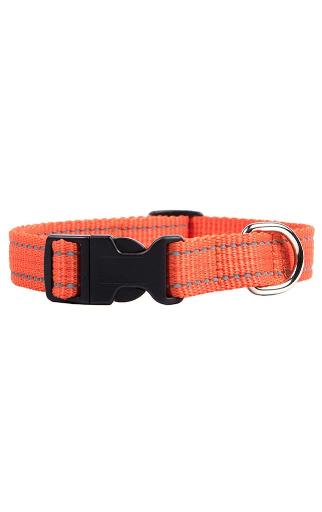 Ширина: 20 мм Обхват шеи: 31-48 см Ошейник из мягкой прочной полипропиленовой ленты, две светоотражающих полосы, застежка - фастекс.