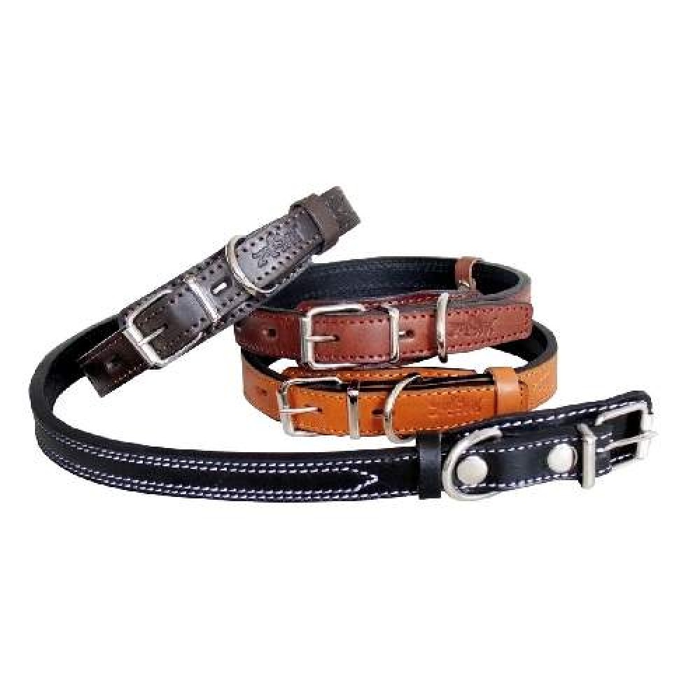 Ошейник кожаный двойной,серия "премиум-классик" 20мм, 28-37см, Зооник, коричневый