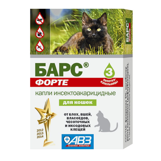 Барс Форте капли инсектоакарицидные д/кошек, 1 уп/3 пип х 1 мл
