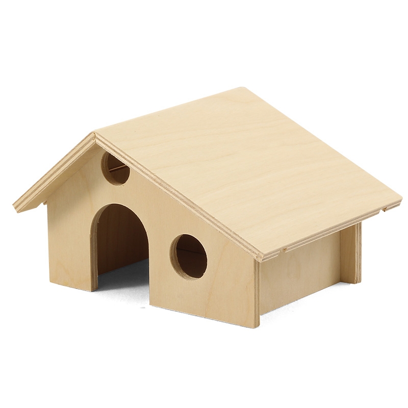 Деревянный домик для мелких грызунов: крыс, мышей, джунгариков, хомячков, песчанок и т.д. Несколько отверстий, в том числе большой вход, обеспечивают свободный доступ внутрь изделия. Домик выполнен из фанеры высшего качества без окрашивания, поэтому его л
