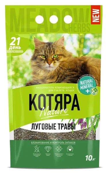 Наполнитель Котяра комкующийся луговые травы п/м пакет 10 л