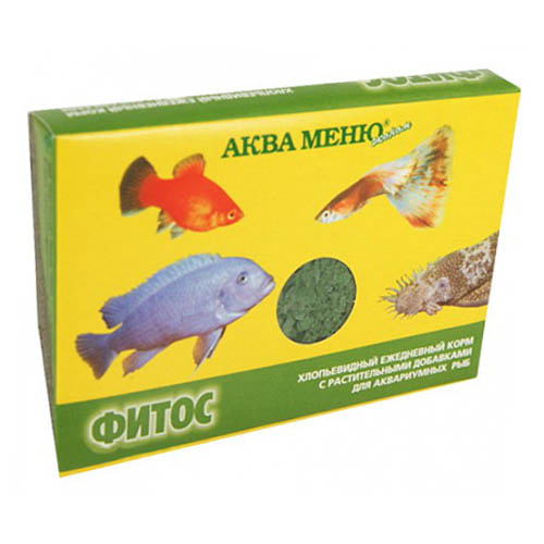 «ФИТОС» - хлопьевидный ежедневный корм с растительными добавками для многих групп рыб: живородящие карпозубые (гуппи, меченосцы, пецилии и др.), растительноядные африканские цихлиды (трофеусы, псевдотрофеусы, меланохромисы и др.) и сомы (анциструсы, лорикарии и др.).