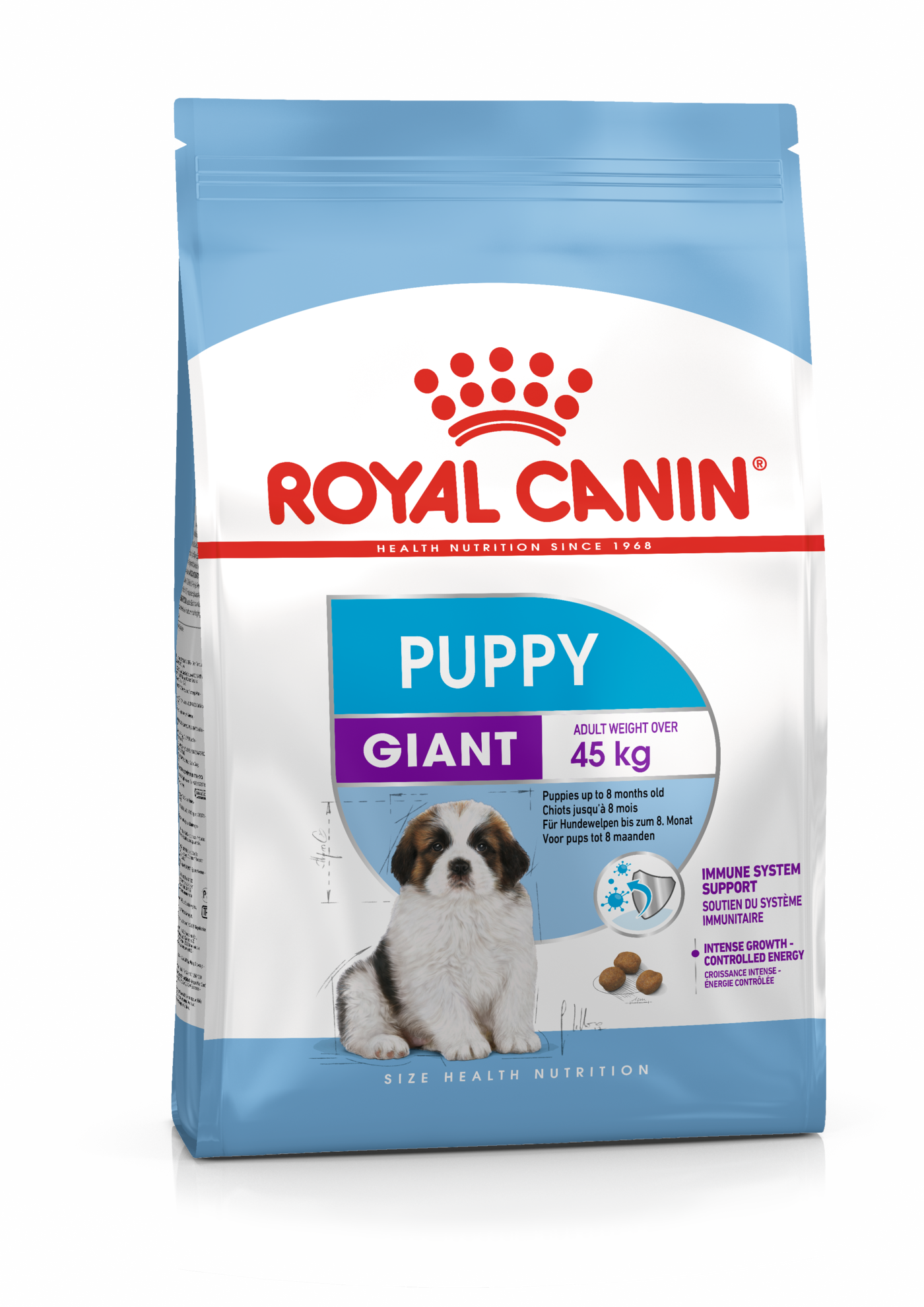 Период роста – важнейшая стадия жизни щенка. Для него это время новых открытий, быстрых физиологических изменений и серьезных испытаний. В этот период постепенно развивается иммунная система. Вот почему вашему щенку необходимо адаптированное питание, которое дополнительно поддержит его развитие. В формулу продукта ROYAL CANIN® Giant Puppy включен запатентованный комплекс антиоксидантов, способствующий развитию естественных защитных механизмов щенка и сохранению его здоровья в целом. Повзрослев, Ваш щенок станет собакой очень крупных размеров. Его интенсивный рост продлится долго, и в этот период для него очень важна диетологическая поддержка. Уровень калорийности ROYAL CANIN® Giant Puppy адаптирован таким образом, чтобы обеспечить вашему щенку здоровое и гармоничное развитие.Благодаря балансу минеральных веществ (в частности, кальция и фосфора) ROYAL CANIN® Giant Puppy способствует нормальной минерализации костей и здоровью суставов у щенков очень крупных собак. Масса нетто: 3,5 кг, 15 кг.