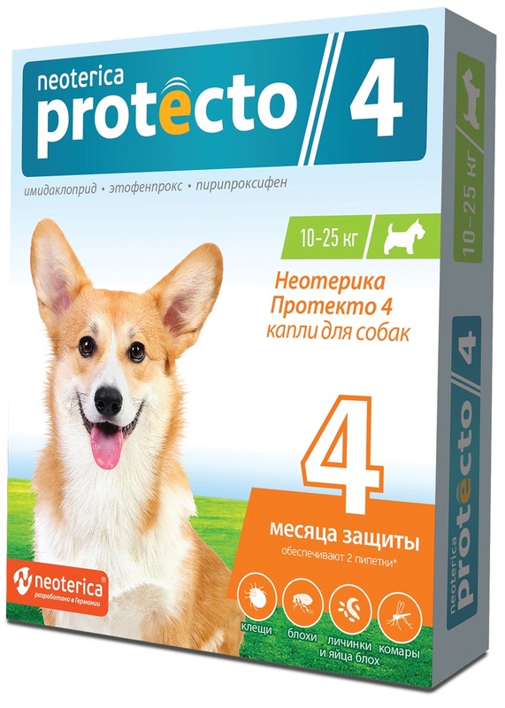 Используйте капли Protecto для собак, кошек и кроликов любых пород с 12-недельного возраста.