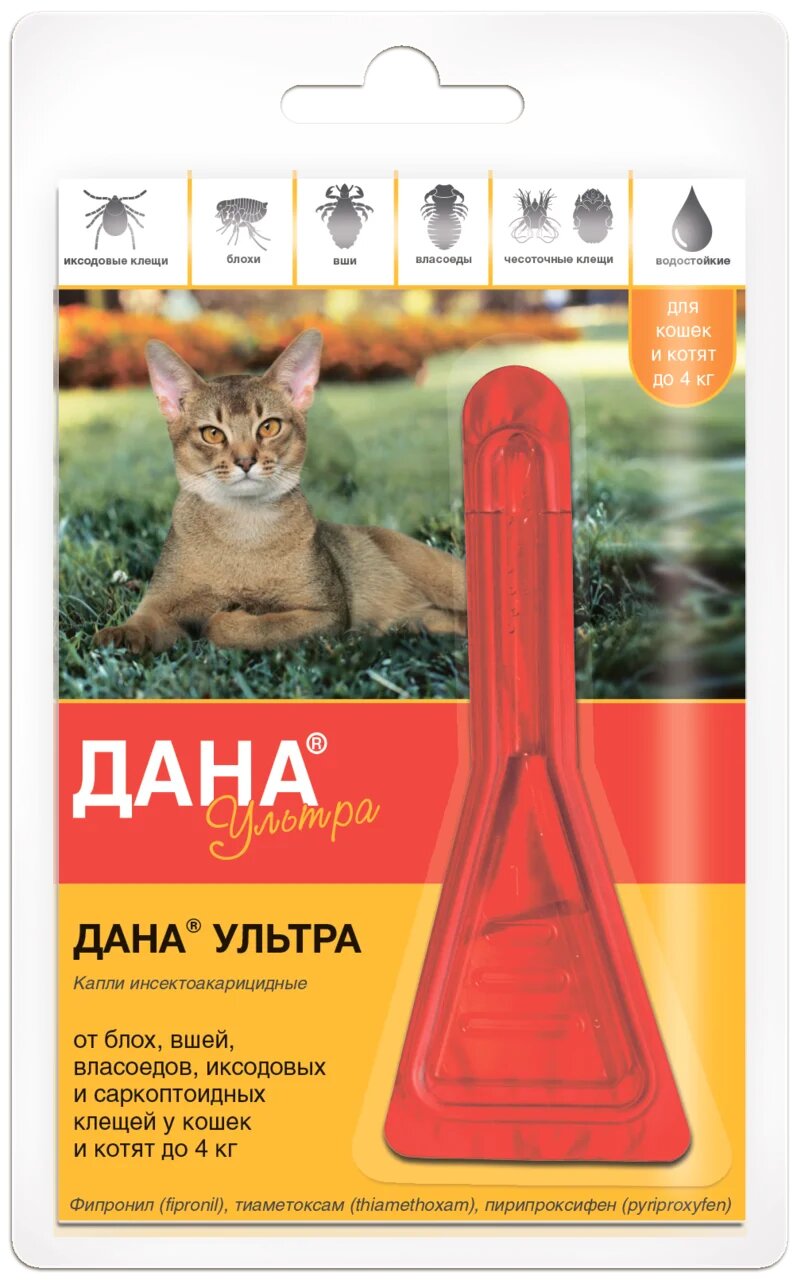 Препарат Дана Ультра применяют собакам и кошкам, щенкам и котятам с 10-недельного возраста для лечения и профилактики энтомозов, вызываемых блохами, вшами, власоедами; акарозов, вызываемых саркоптоидными и иксодовыми клещами.Дозировка и применение