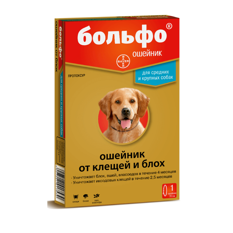 После вскрытия упаковки ошейник разворачивают, освобождают от пластмассовых перемычек и одевают на животное, подгоняя по размеру так, чтобы между шеей и ошейником оставался промежуток в 2 пальца, затем закрывают запор. Непрерывное использование ошейника обеспечивает защиту собак от насекомых в течение 5 месяцев, кошек — в течение 4 месяцев, а от иксодовых клещей в течение — 10 недель. Ошейник водоустойчив, его можно не снимать во время мытья и купания животного. При сильной степени инвазии перед применением ошейника, целесообразно вымыть животное с использованием инсектицидного шампуня Больфо.